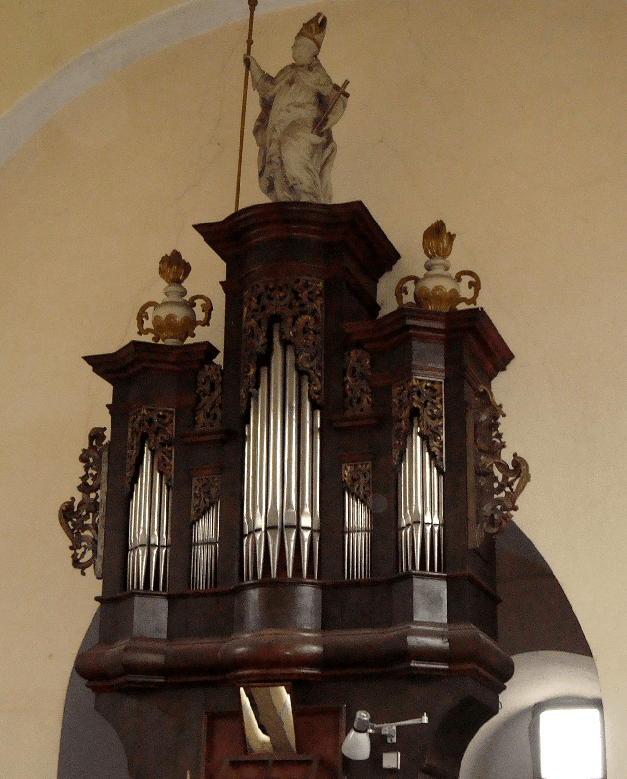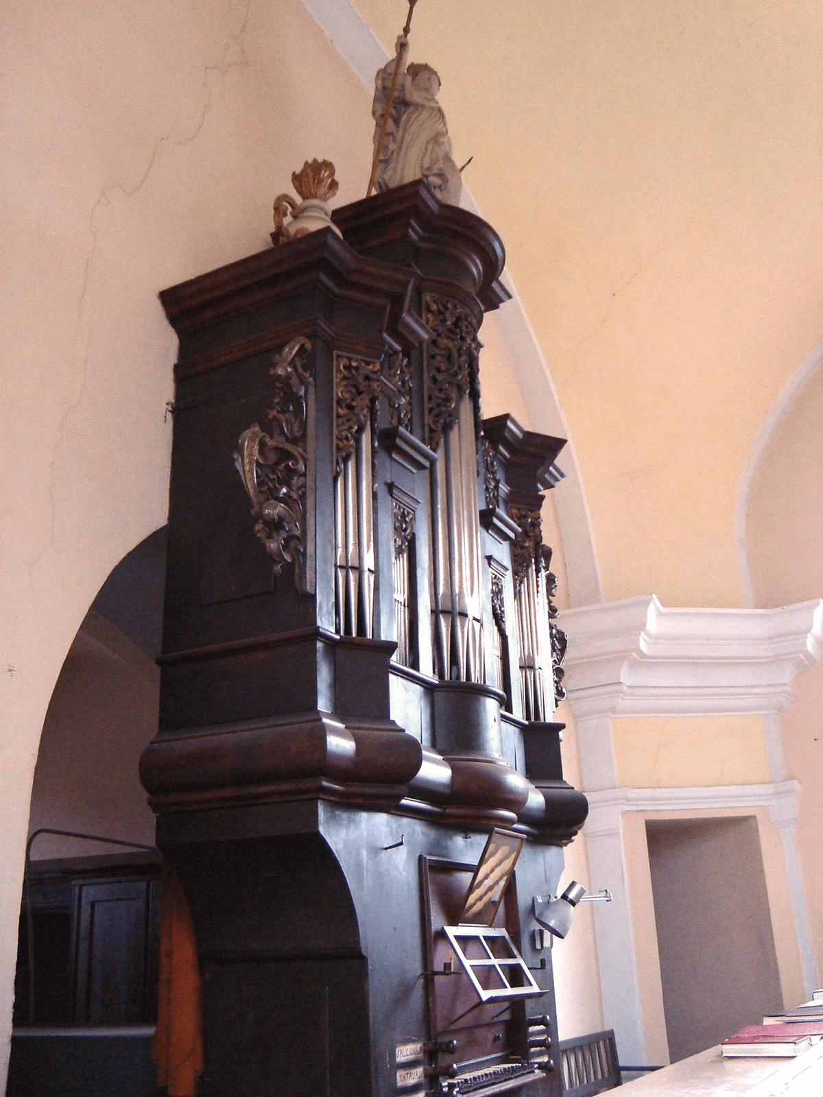 Nynější barokní kostel pochází z počátku 18 . století a v roce 1716 v něm byly postaveny nové varhany za  jejichž autora můžeme prohlásit varhanáře Leopolda Spiegla z Malé Strany v Praze. O vzniku nynějších varhan nemáme žádný dochovaný pramen. Dle provedení, píšťal, manubrií a jiných charakteristických znaků se s určitostí jedná o dílo varhanáře Norberta Christopha Starcka z Lokte z doby okolo poloviny 18. století. Nástroj patří k nejvzácnějším organologickým památkám nejen Litoměřicka a ke kvalitním barokním dílům svého druhu na českém venkově.