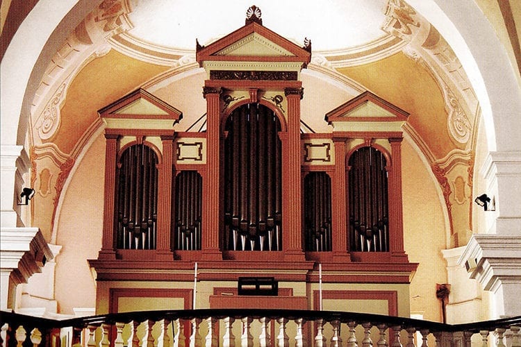 Bordun 16′, Princi pal 8′, Flétna harm. 8′, Kryt 8′, Gamba 8′, Dolce 8′, Oktáva 4′, Flétna 4′, Nasard 2 2/3′,