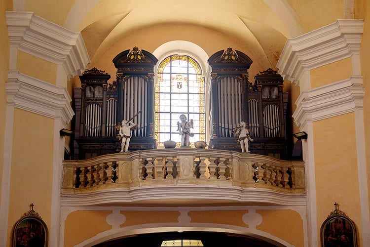 Dvoumanuálový, pneumatický nástroj s 16 rejstříky postavil pro kostel sv. Jana Nepomuckého v Nepomuku českobudějovický varhanář František Šurát v roce 1912.