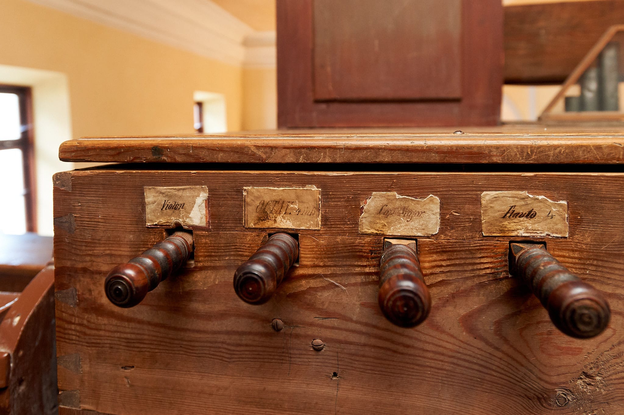 Copula major 8´, Principal 4´, Flauto 4´, Oktáva 2´, Quint 1 1/3´, Mixtur 3x