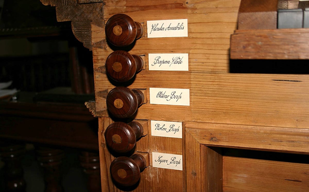 Manuál (C–c3, 49 tónů – původní stav; názvy hlasů dle restaurátorského průzkumu)