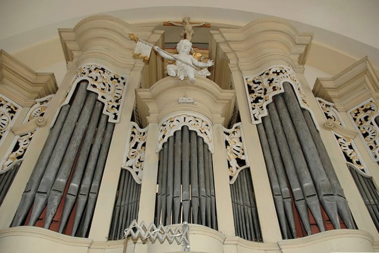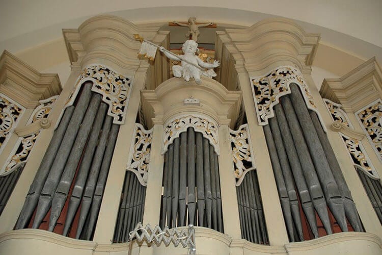 Dvoumanuálový mechanický zásuvkový nástroj s pedálem postavil v roce 1795 Jan Jiří Španiel z Rokytnice v Orlických horách. Nástroj byl několikrát přestavován. Hrací stůl volně stojící, původní dispozice částečně změněna. Vzduchová soustava je v zadní části kůru, novější měch s hlučným ventilátorem.