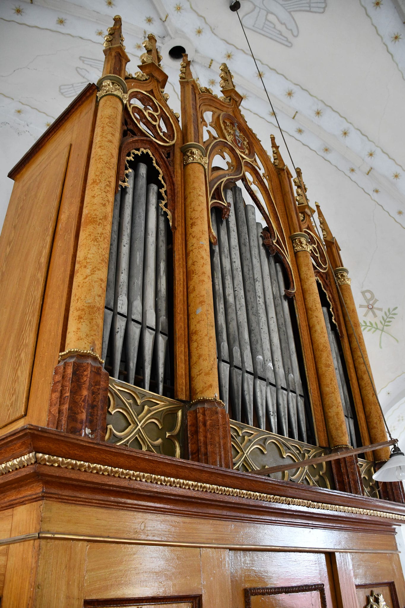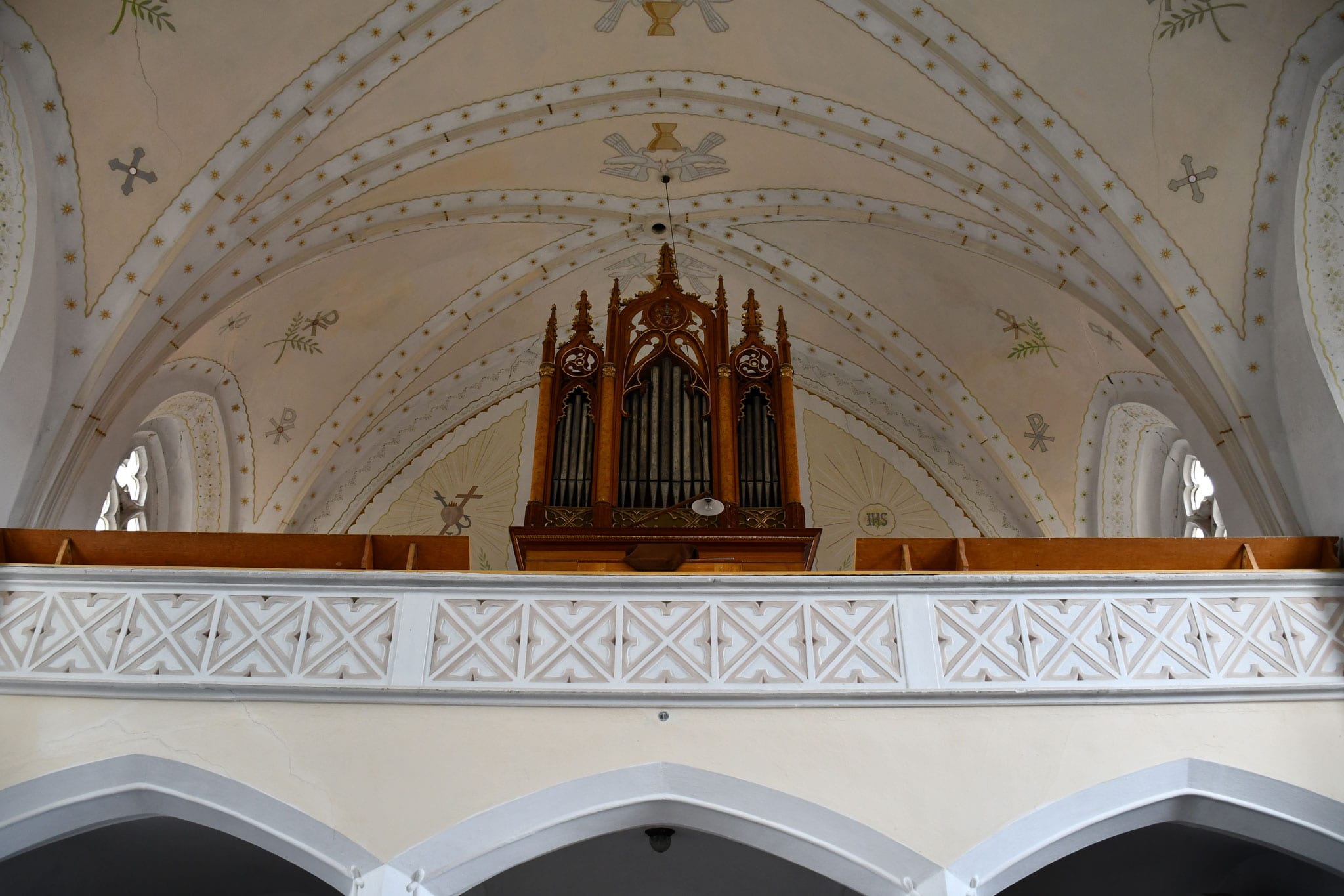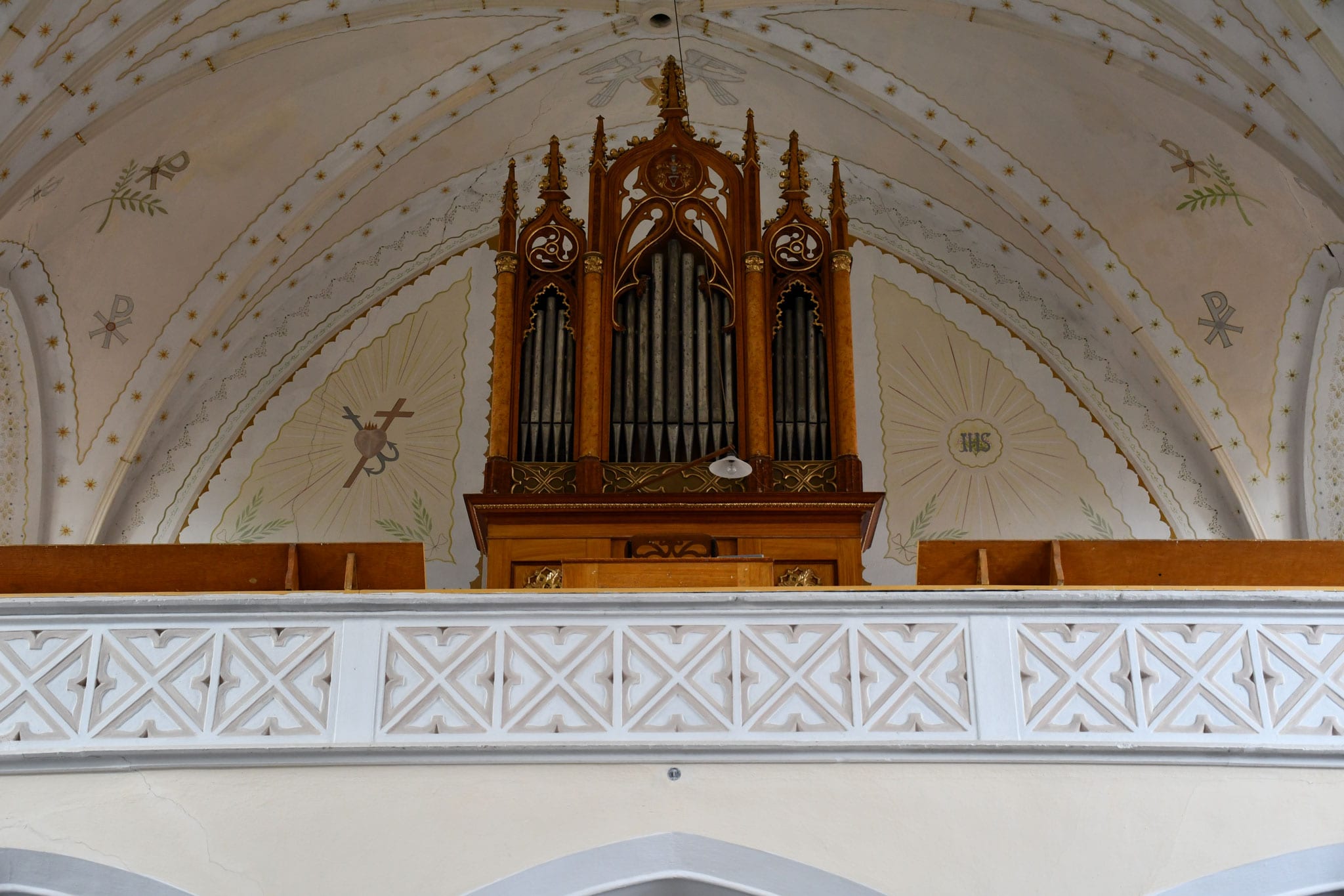 Manuál (C–d3) Copula 4´, Bordun 8´, Principal 4´, Quint 3´, Octav 2´, Terz 1 3/5´, Mixtur 1 1/2´