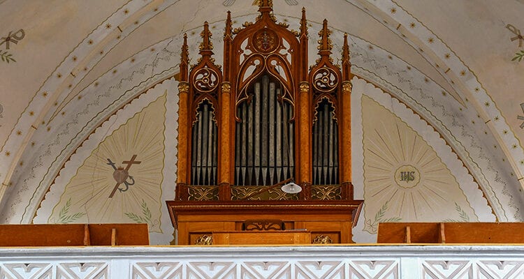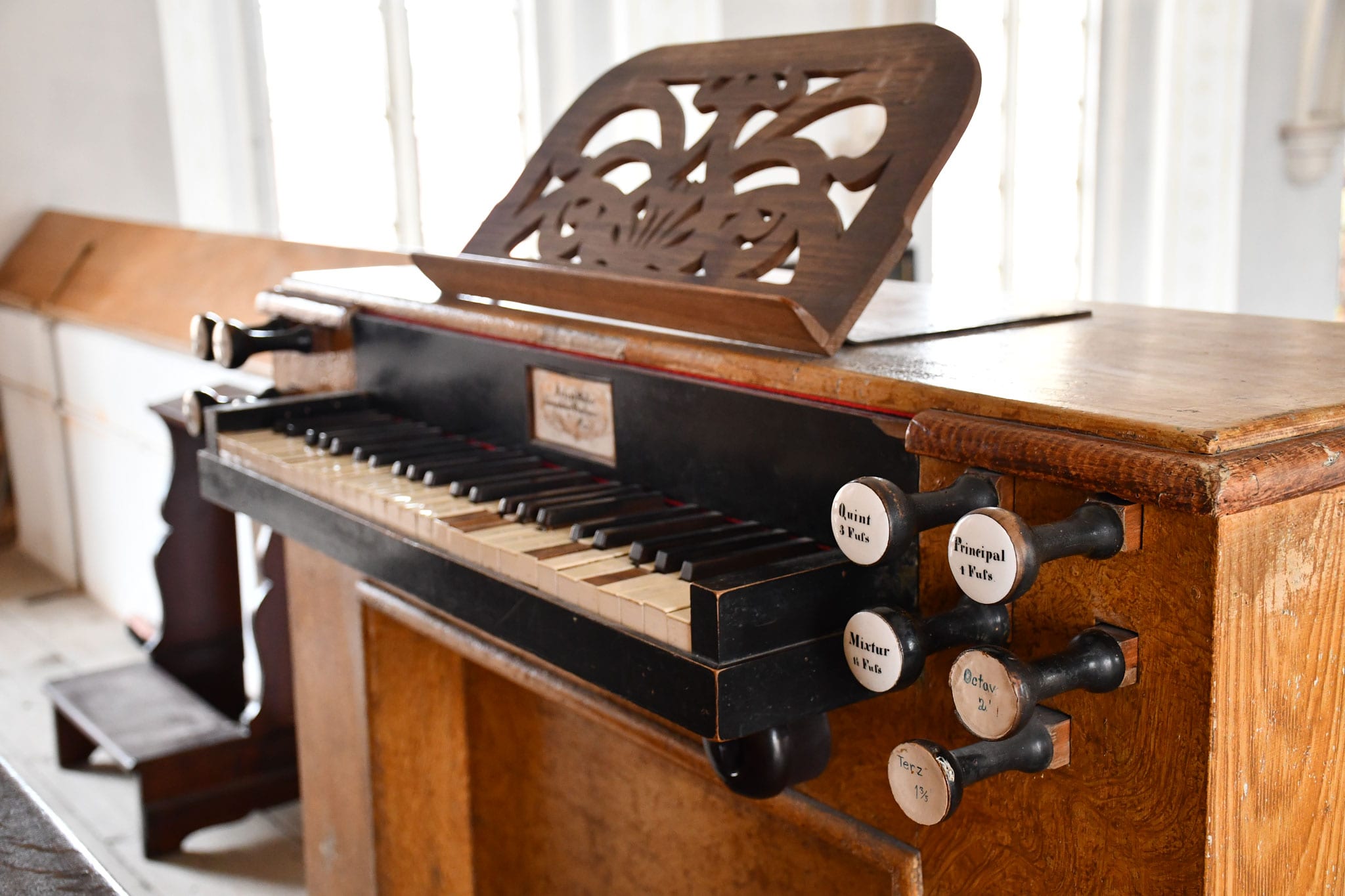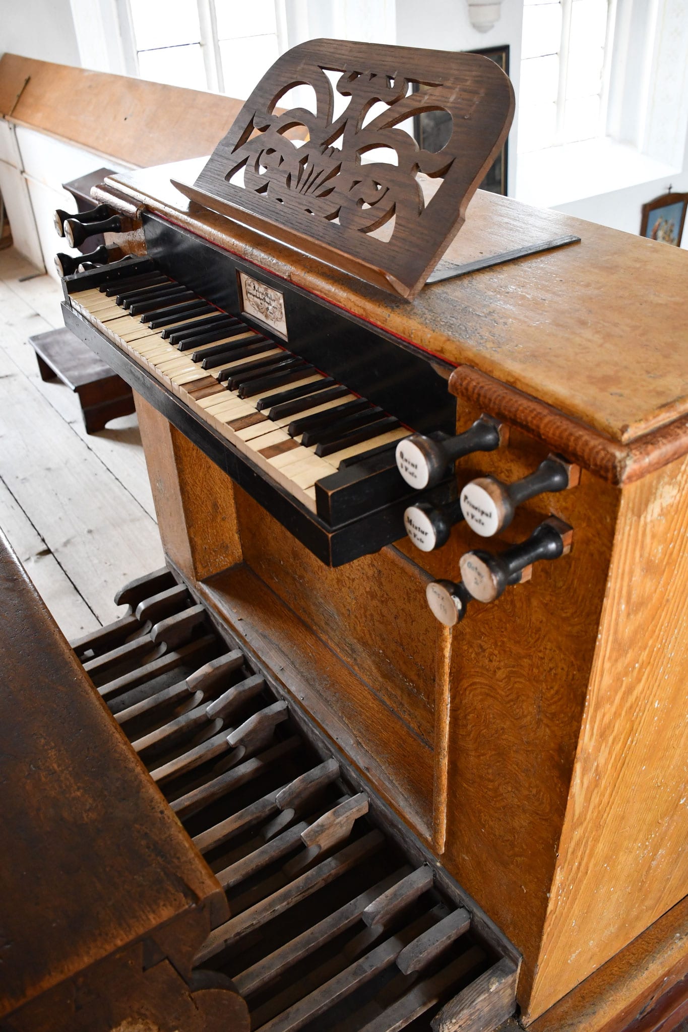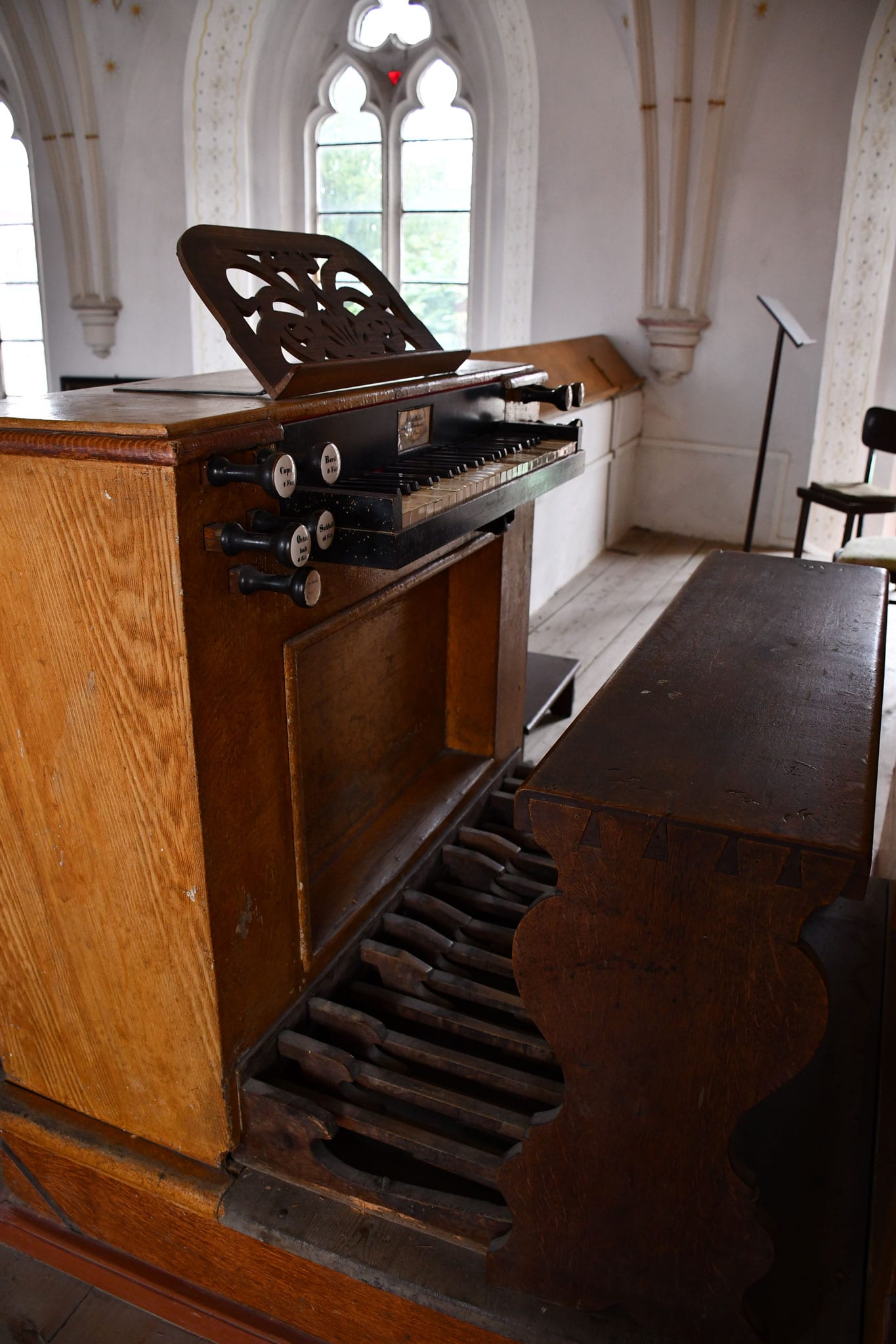 Manuál (C–d3) Copula 4´, Bordun 8´, Principal 4´, Quint 3´, Octav 2´, Terz 1 3/5´, Mixtur 1 1/2´