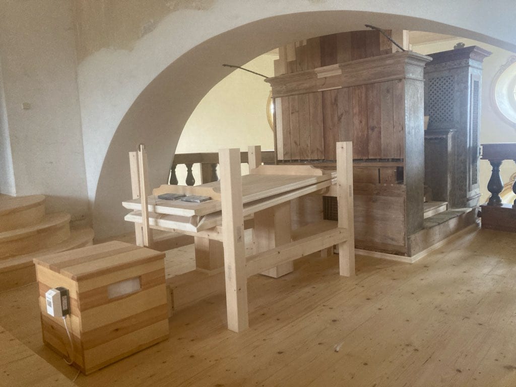 jako kopie. Původní pedálová klaviatura se nedochovala, byla proto zhotovena klaviatura nová podle Guthova vzoru. Kovové píšťaly byly narovnány, vyletovány dodatečné zářezy, praskliny a trhliny. Dřevěné píšťaly byly zbaveny druhotných přelepů a zatlučených hřebíků, rozklížené spoje byly nově slepeny. Všechny píšťaly byly nastaveny (prodlouženy) na správnou délku. Chybějící píšťaly byly zhotoveny nově; jejich tvary a menzury byly odvozeny od píšťal dochovaných. Ze 24 prospektových píšťal se jich dochovalo 16; jejich technický stav byl však natolik žalostný, že je s ohledem na kýžený zvuk již nebylo možné použít. Celý prospekt byl proto zhotoven nově jako kopie.