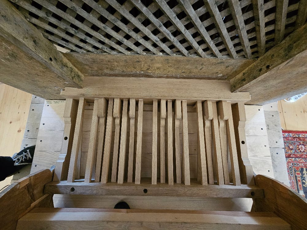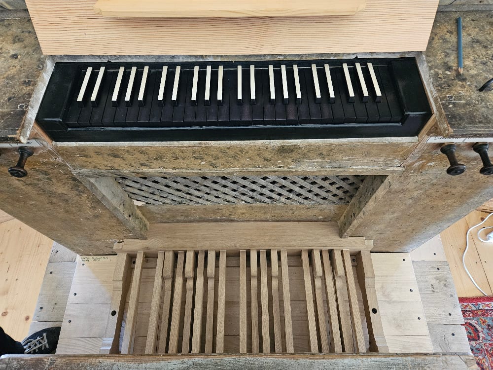Vzdušnice byly truhlářsky opraveny a utěsněny proléváním teplým klihem; všechna kožená těsnění byla nalepena nová. Traktury byly uvedeny do původního stavu.
