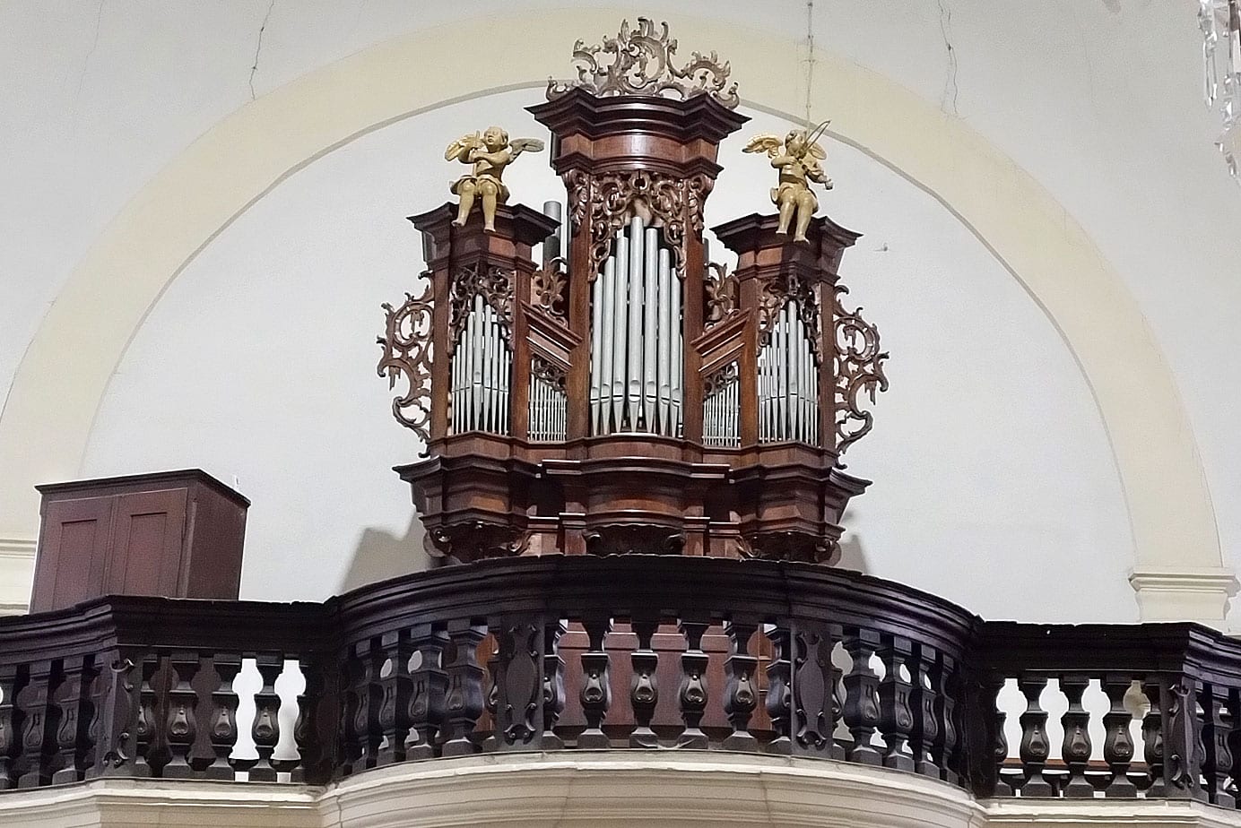 Do novostavby bečovského kostela sv. Jiří byly v letech 1774-75 pořízeny varhany z dílny loketského varhanáře Ignaze Johanna Schmidta (1727–1802) s píšťalami od cínaře Caspara Grundta. Varhanní skříň byla ozdobena ornamentální dřevořezbou od mistra Antona Pacha. Nástroj měl na dvou manuálech s pedálem 12 rejstříků. Při přestavbě varhan v roce 1896 použil varhanář Christoph Müller z Pomezí a Úšovic původní barokní skříň a zčásti i píšťalový materiál a vytvořil nástroj vzácné zvukové kvality. Nástroj byl v letech 2021 až 2024 pietně zrestaurován mistrem varhanářem Markem Vorlíčkem