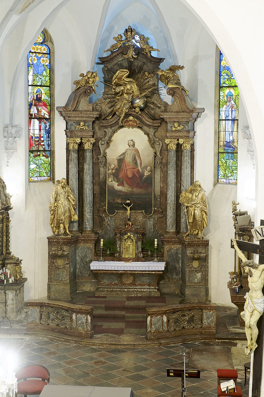 Nový velký nástroj byl v chrámu postaven pražským varhanářem Matějem Sedmíkem v roce 1769. Staré varhany Sedmík opravil a přenesl do hřbitovního kostela sv. Jiří, kde se v podstatě dochovaly dodnes. Nové varhany byly rozděleny do dvou křídel, měly celkově na dvou manuálech a v pedálu 16 rejstříků a stály 700zl. Varhany opravil v roce 1774 litoměřický Johann Rusch, renovaci za 513zl. uskutečnil v roce 1821 čistecký varhanář Guth.