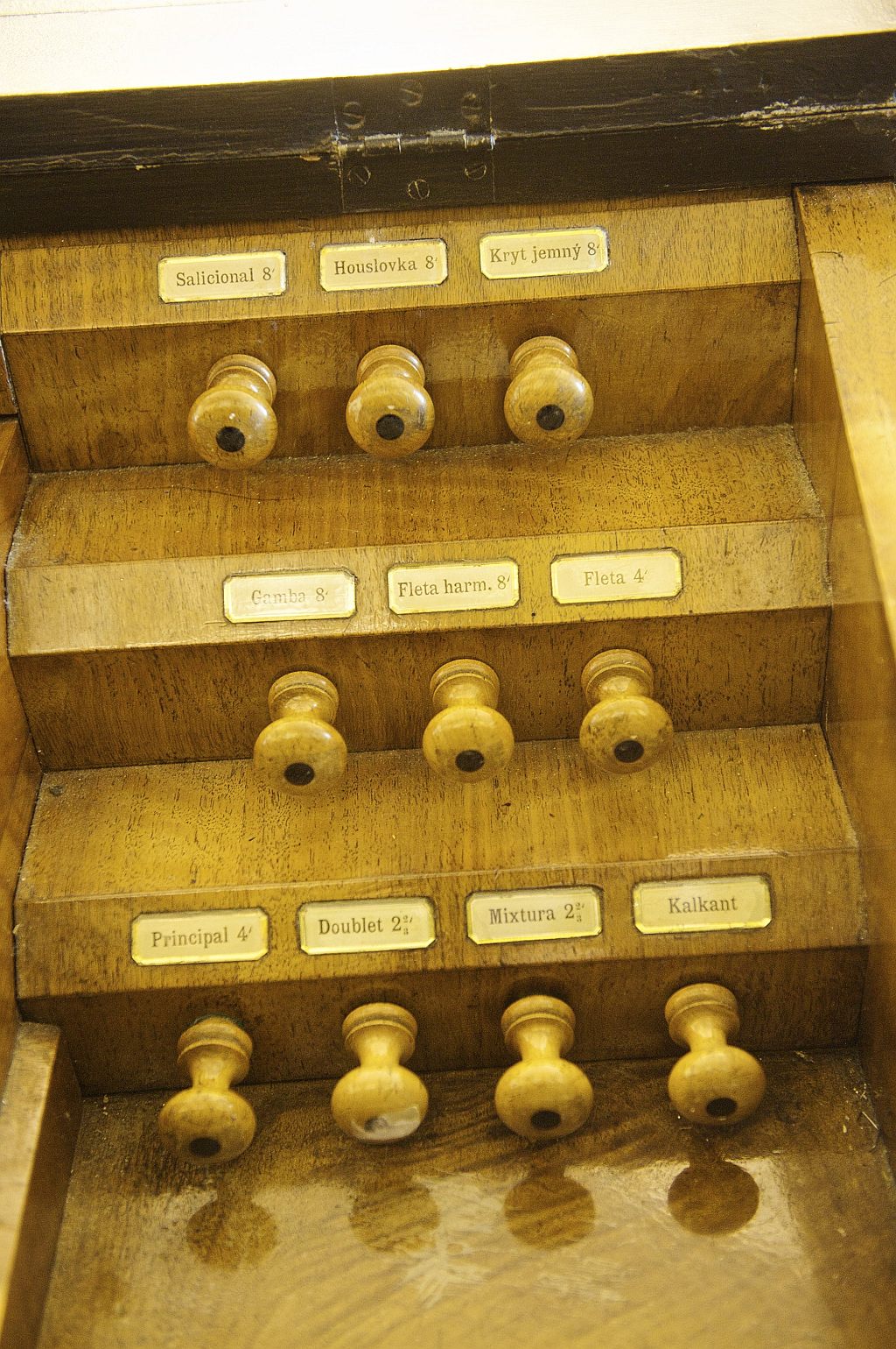 Principal housl. 8´, Kryt jemný 8´, Salicional 8´, Houslovka 8´, Fugara 4´, Klarinett 8´