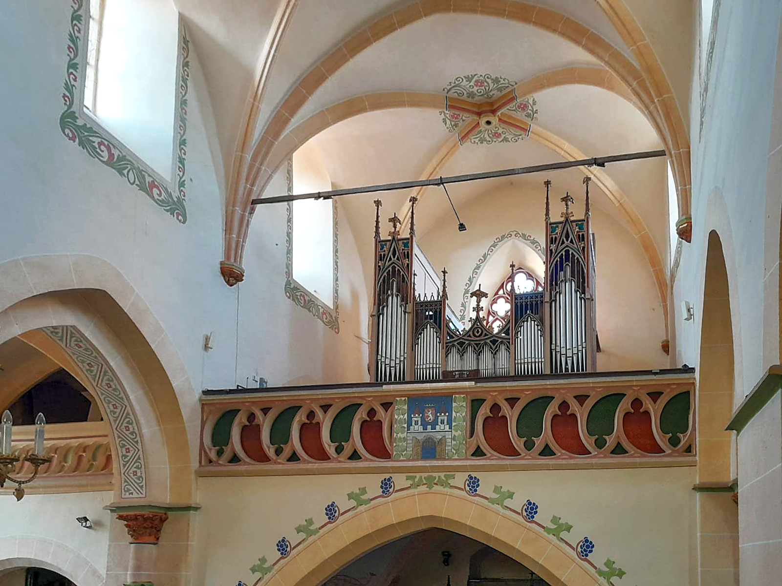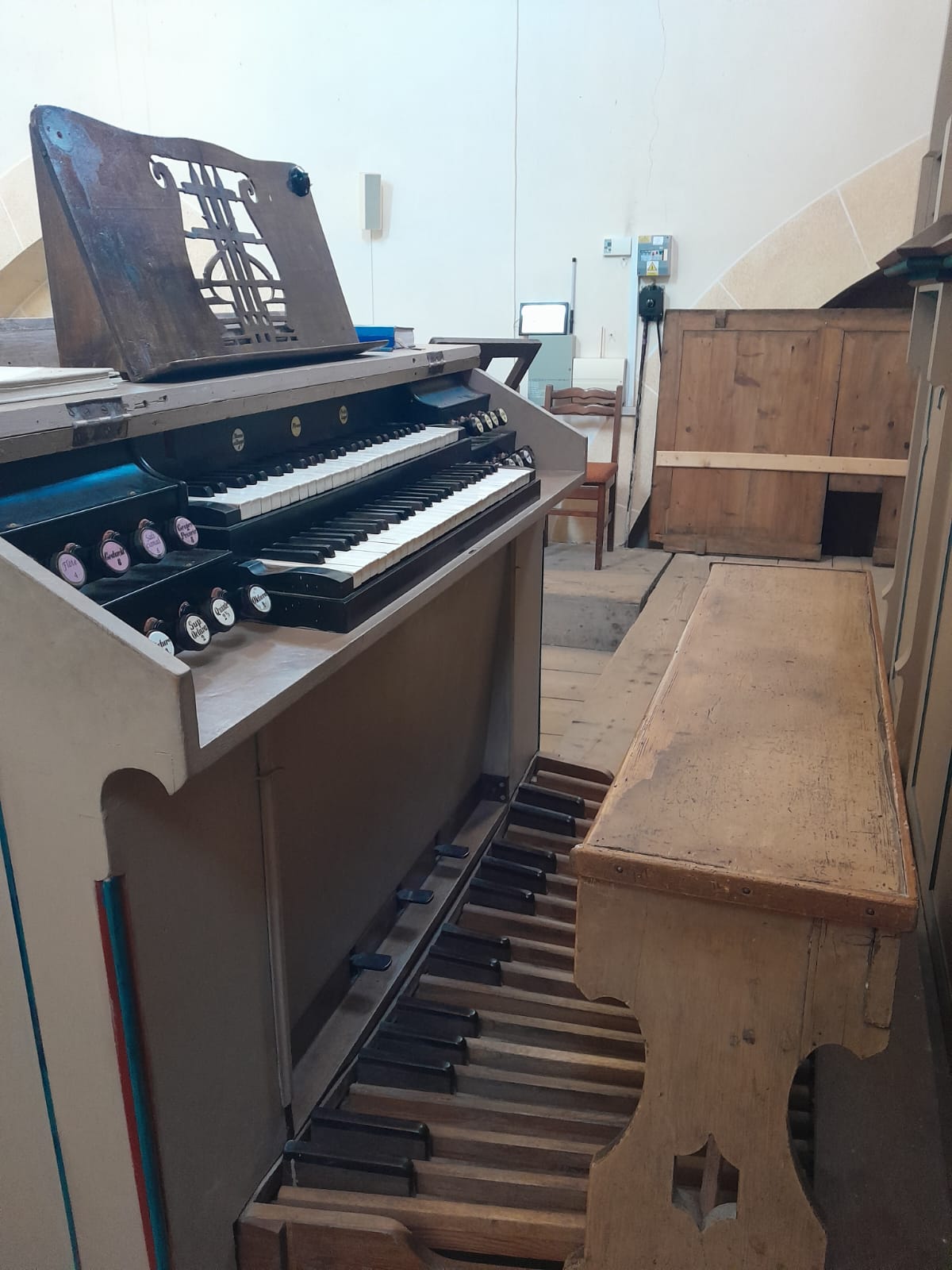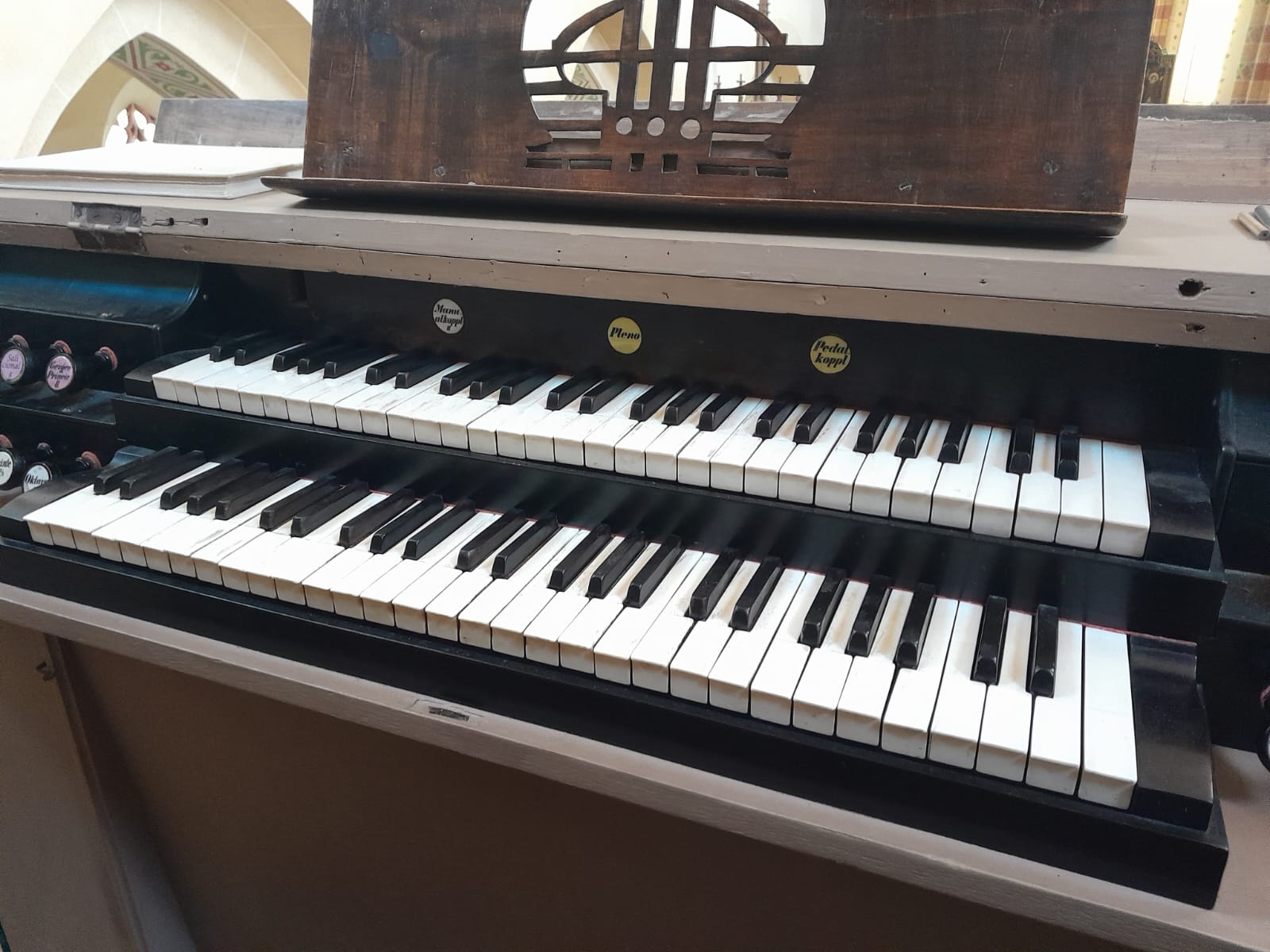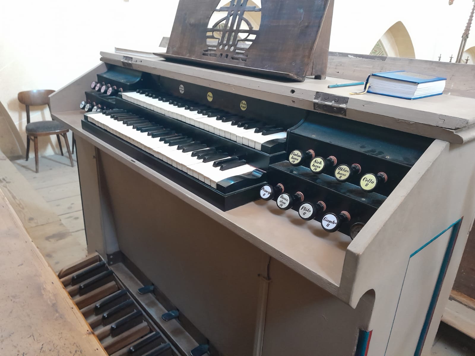 Bourdon 16´, Princip. 8´, Flöte 8´, Gamba 8´, ???, Oktava 4´, Quinte 2 2/3, Sup. Octava 2´, Mixtura 2.3.